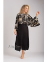 Top avec manches en soie coton aux imprimés ethniques. Crop top, coupe géométrique accentué par les motifs ethniques bicolores.