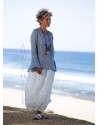 Associé à notre jupe Zoé en lin blanc naturel : une coupe tulipe confortable à panneaux multiples (sans poches) ourlet froncé élastiqué et fente à l'arrière pour l' aisance de la marche...