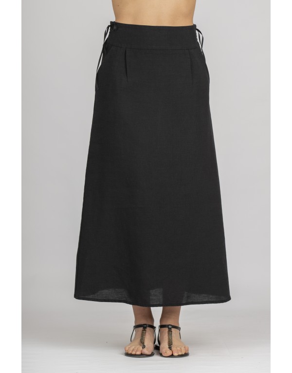 <h3>Jupe en lin , asymétrique , mi-longue, taille élastiquée au dos avec une fermeture sur le côté. A l'avant une fente médiane qui facilite la marche . Amalthee création et fabrication française. .</h3>